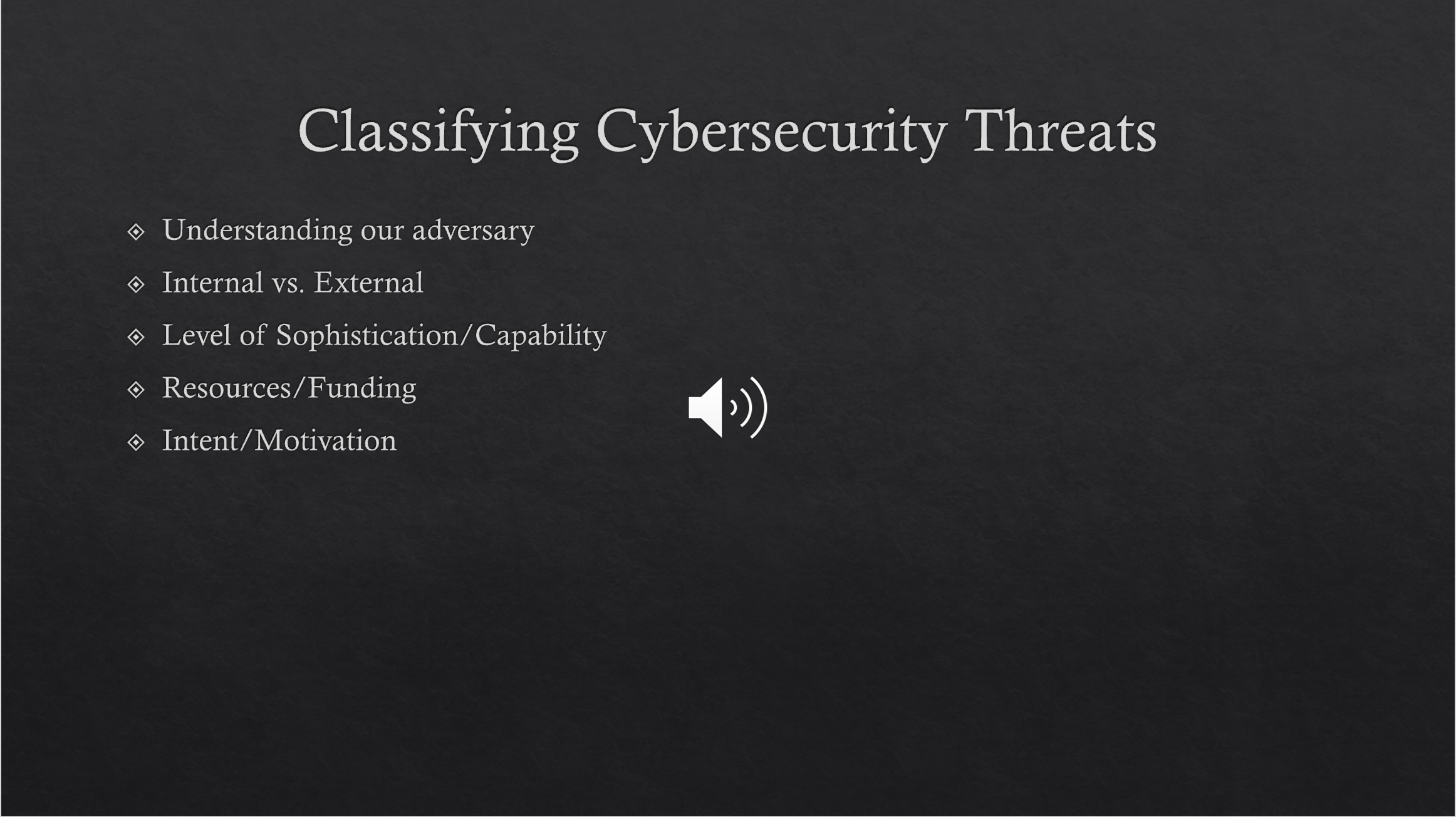 So the first thing is understanding our adversary. You have to kind of know who you're going up against.