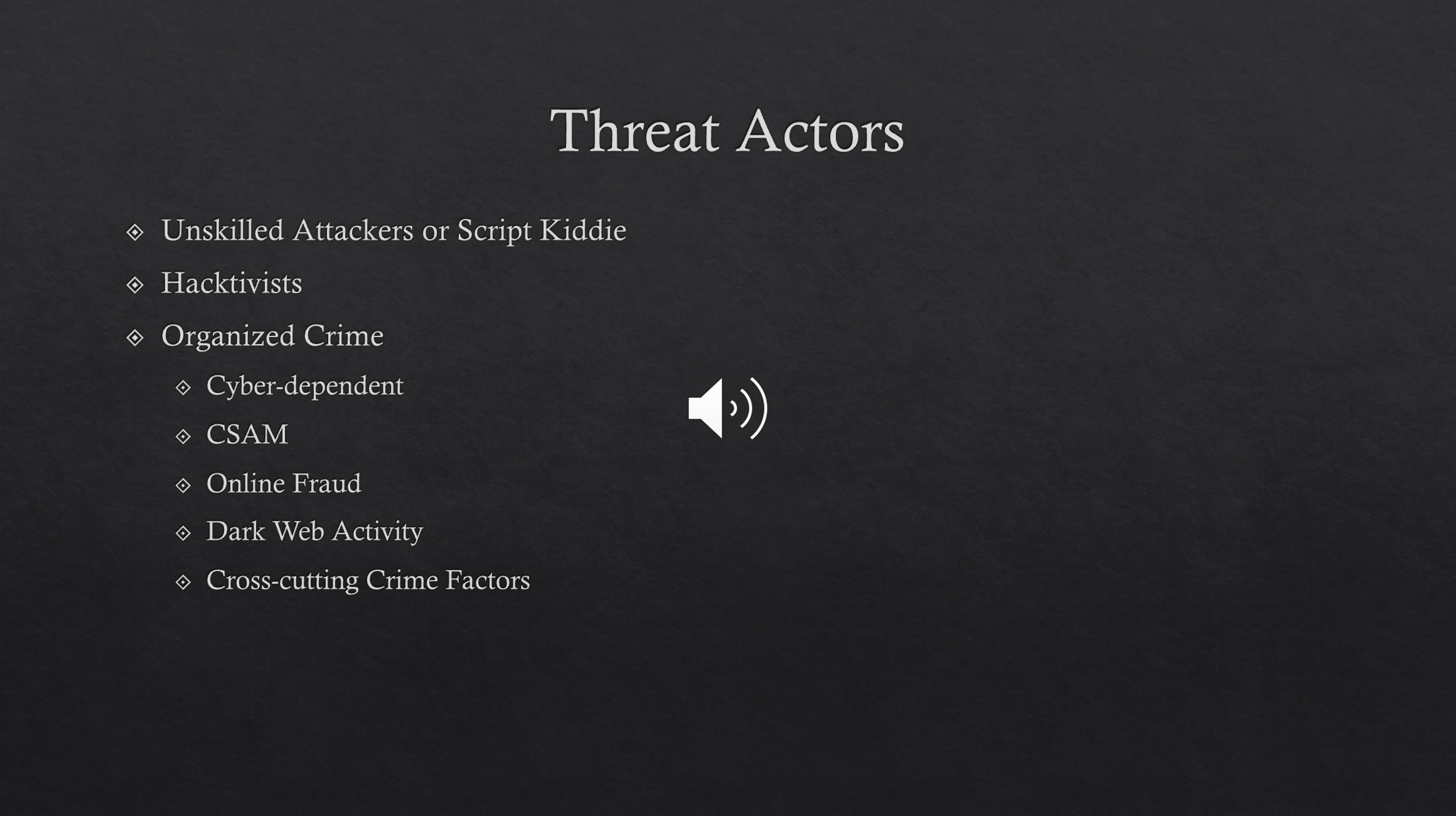 So the first one that we want to talk about is unskilled attackers or something called script kiddies. So these are basically people that have no real skills other than they know how to search the web. You can find scripts on the web.