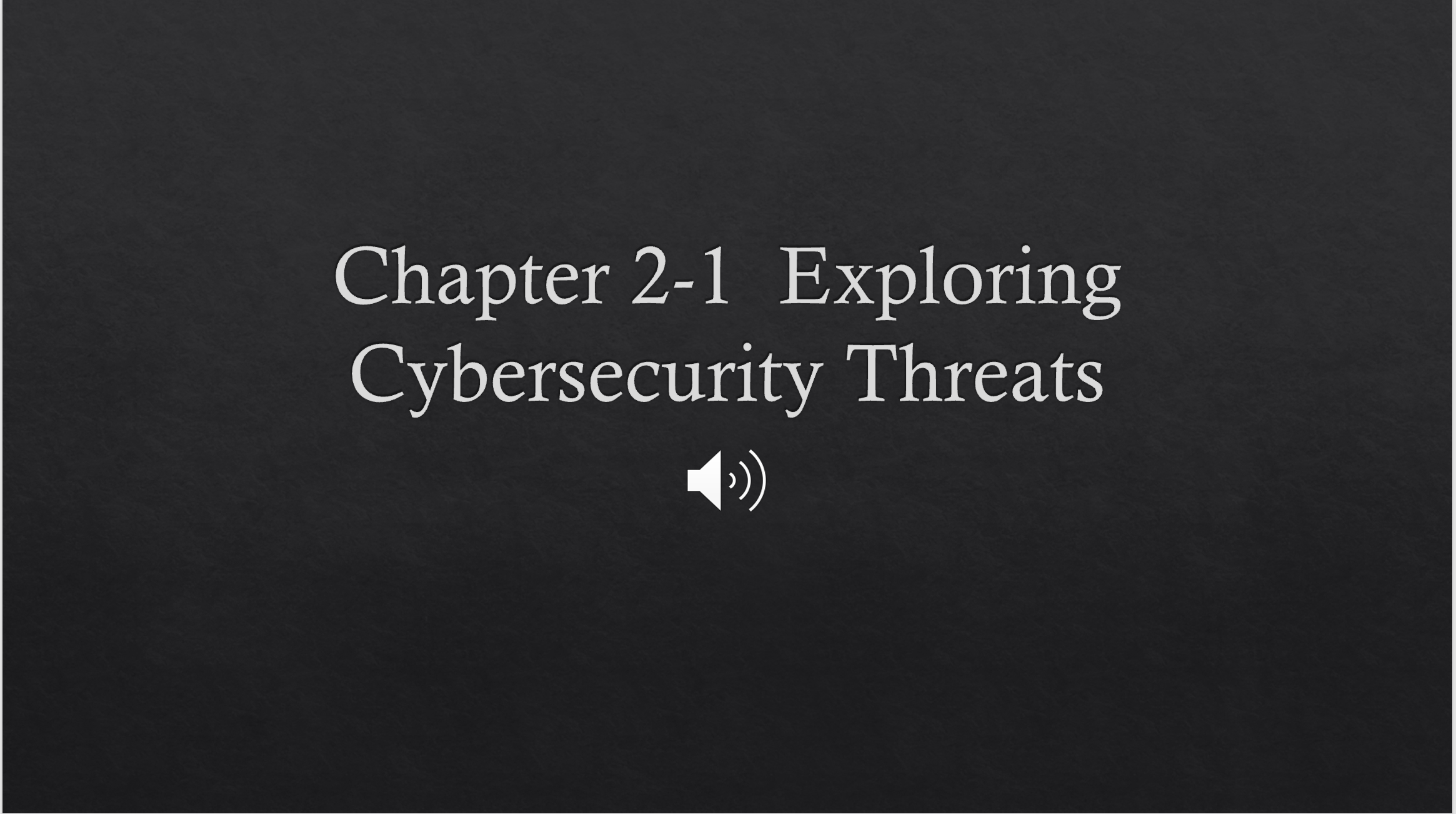 So let's jump into chapter two, Section 1, which is exploring cyber security threats.